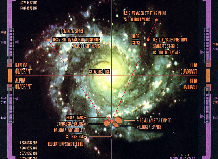 The milky way galaxy was commonly divided into four equally sized, cubic quadrants, defined by one meridian passing through the galactic core and a second one perpendicular to the first, that also passes through the galactic core. An astrographic organization al system devised for the milky way galaxy by the ufp and the major neighboring stellar governments, using once again the alphabet of earth's ancient greeks. In most reference works, novels, and games, klingon and romulan space are usually depicted or stated to be located solely in the beta quadrant.this would make the federation the only government spanning both quadrants. Mainly the species along voyager's path home (as part of a marketing technique), and the species who have their own big empires. In the pilot of star trek: